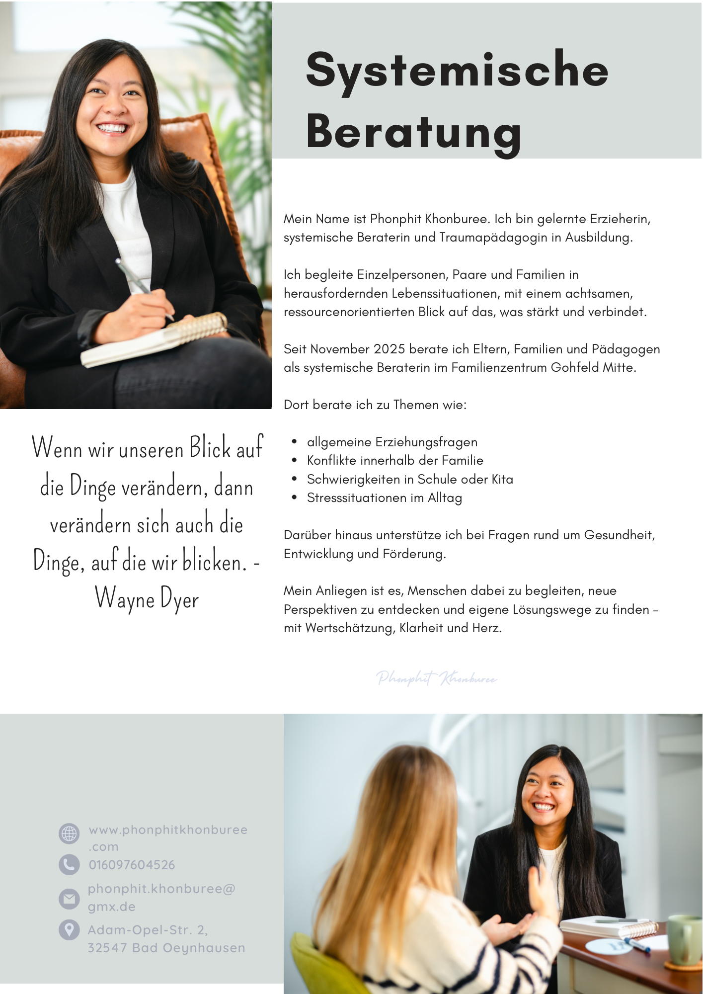 Uns ist wichtig: Beratung ist nichts Negatives. Sie ist ein wertvolles Angebot, um neue Perspektiven zu gewinnen, eigene Stärken zu etdecken und gemeinsam Lösungen zu entwickeln. Manchmal hilft schon ein Gespräch, um Klarheit zu finden, Entlastung zu spüren oder neue Wege zu sehen.
